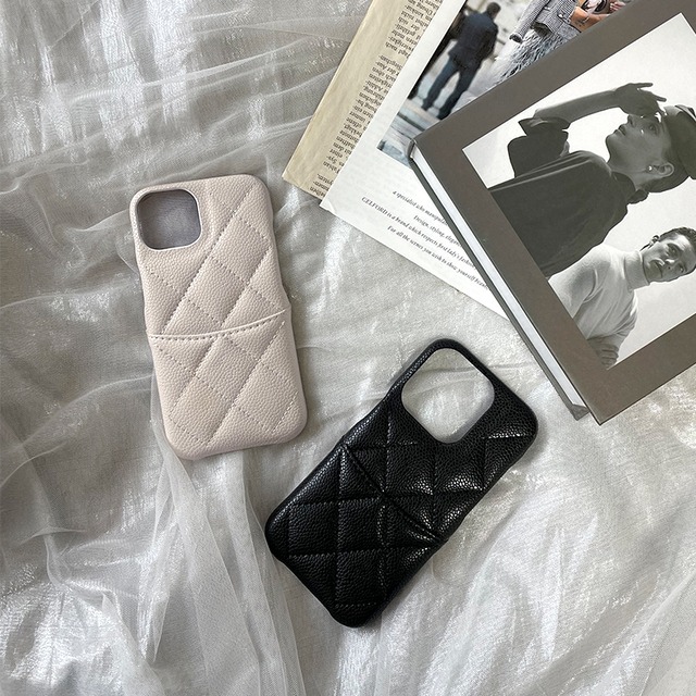 • すぐ届く 背面ポケット付き レザーキ ルティング ハードケース iPhoneシリーズ iPhoneケース[EHEN]