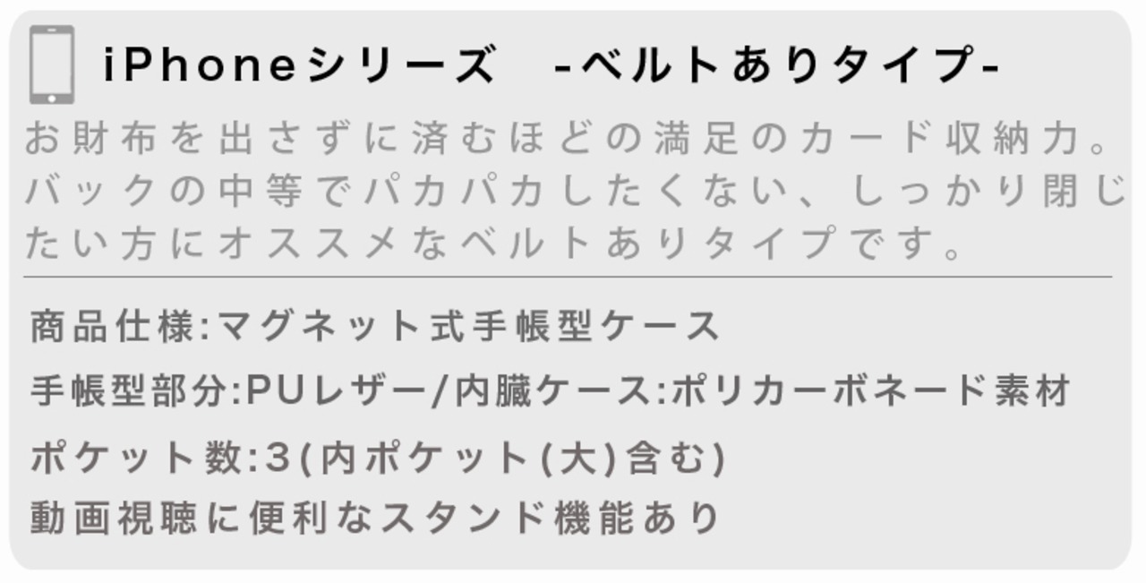 「かわいい」だけじゃ意味がない!収納力抜群のベルト有りタイプ手帳型ケースです。