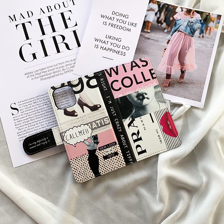 【選べる2TYPE】手帳型ケース コラージュ柄スマホケース[iPhoneケース][EHEN]