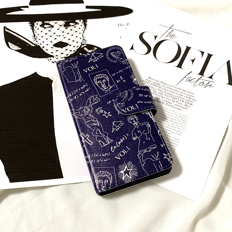 手帳型ケース アート柄 スマホケース ネイビー[iPhoneケース][EHEN]