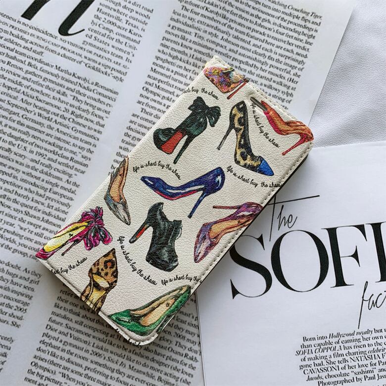 シンプルなフォルムでロングセラー!手帳型ケース シューズ柄 スマホケース[iPhoneケース][EHEN]