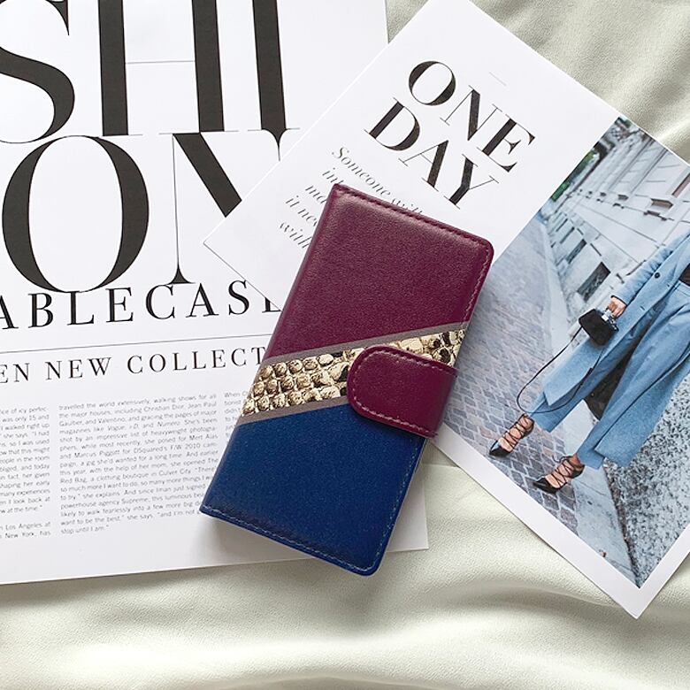 【選べる2TYPE】手帳型ケース バイカラー パイソン柄スマホケース[iPhoneケース][EHEN]