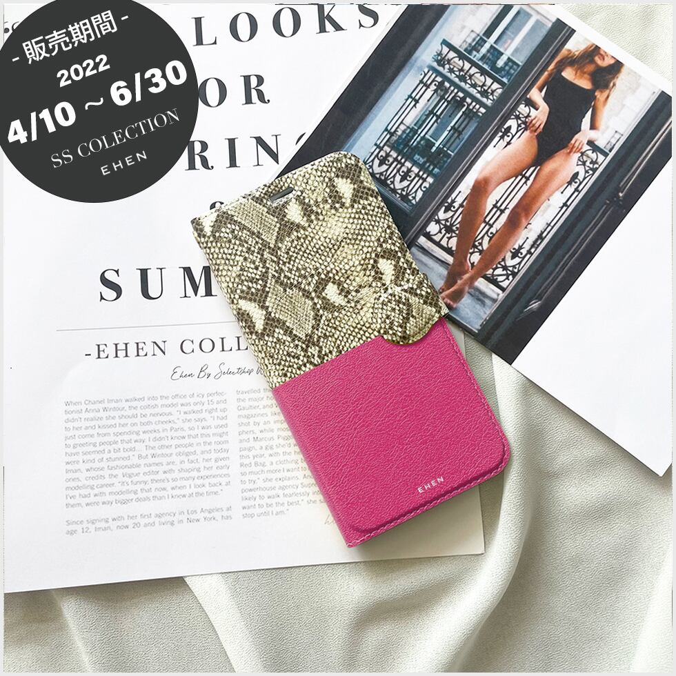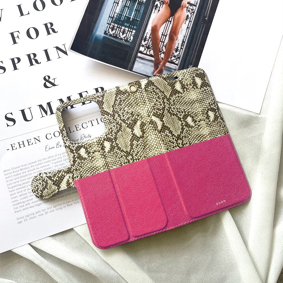 2022SS■ベルトあり手帳型スマホケース/パイソン柄/ビタミンカラー/ピンク[EHEN]