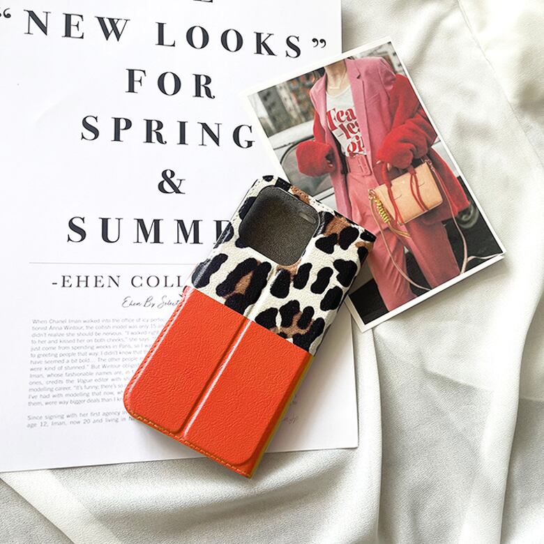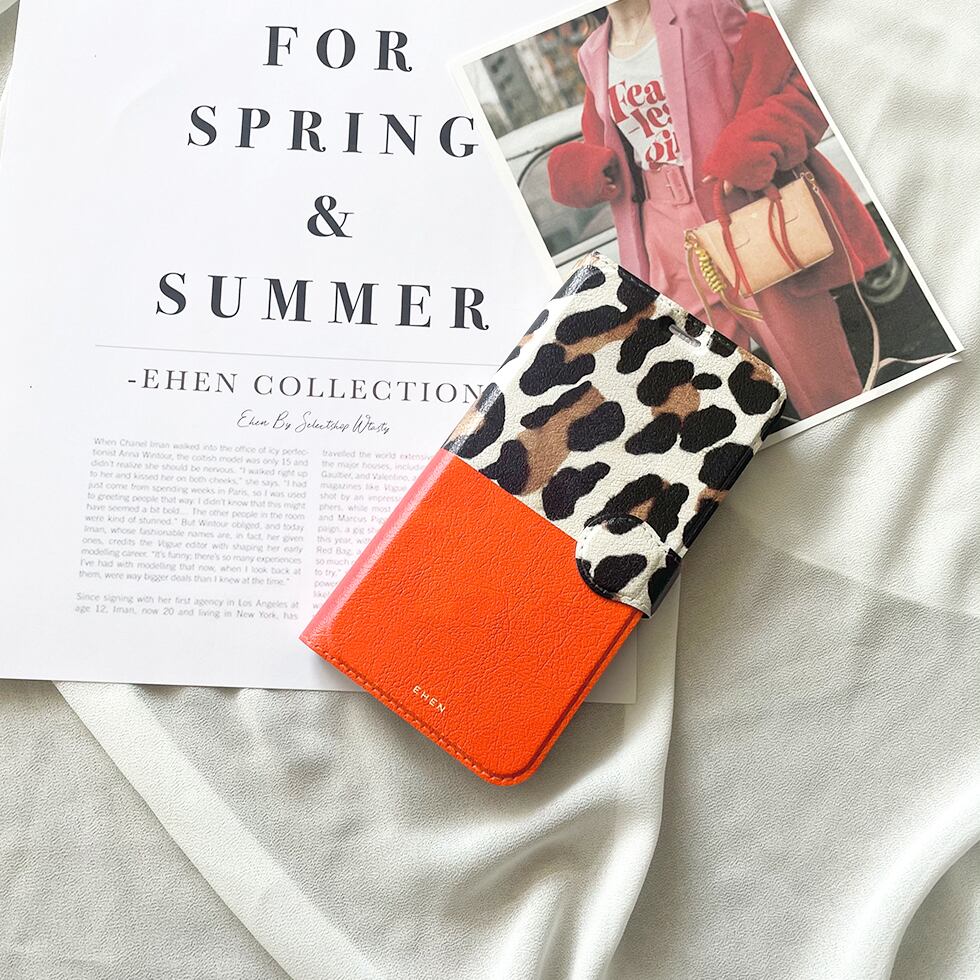 2022SS■ベルトあり手帳型スマホケース/レオパード柄/ビタミンカラー/オレンジ[EHEN]