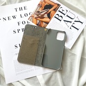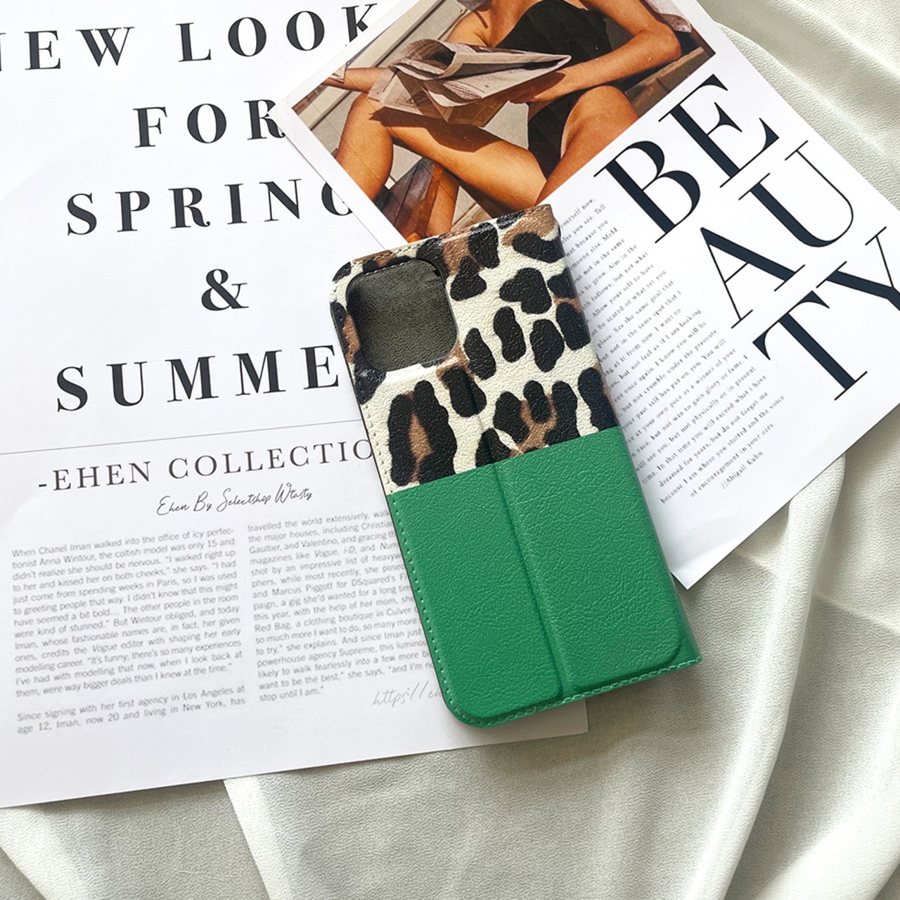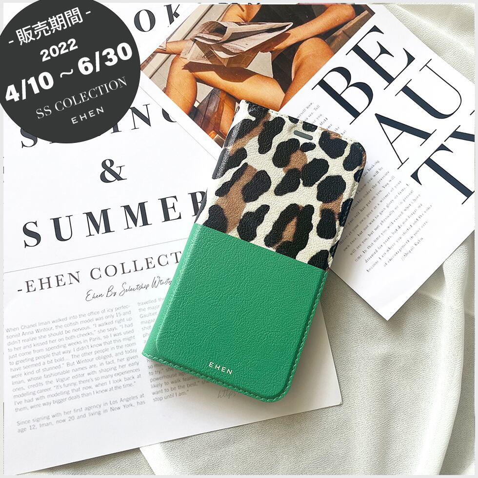 2022SS■ベルトなし手帳型スマホケース/レオパード柄/ビタミンカラー/グリーン[スタンド機能あり][EHEN]