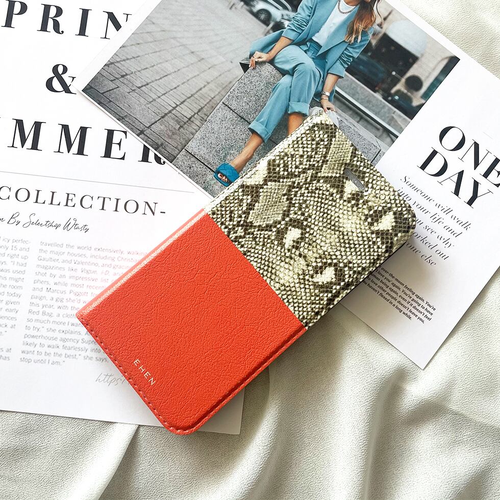 2022SS■ベルトなし手帳型スマホケース/パイソン柄/ビタミンカラー/オレンジ[スタンド機能あり][EHEN]